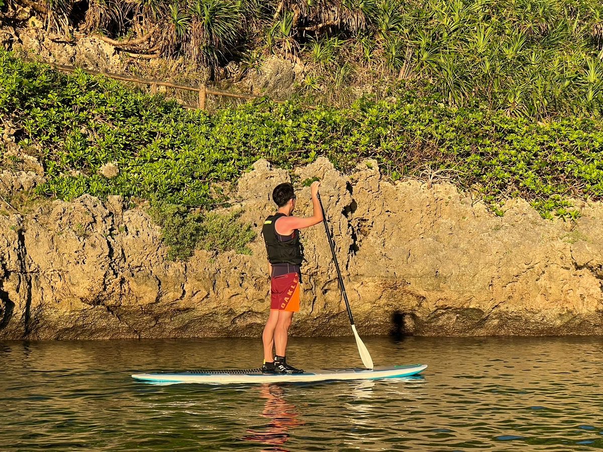 午前中は初めてのSUPで不安もありましたが、ガイドのしょうたろうさんの的確な指示のおかげでボードの上に立って漕ぎ、楽しむことができました