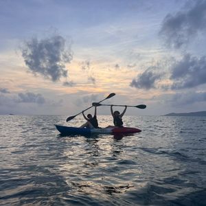 サンセットでカヤックをしました。天気は微妙でしたが、それでも空は綺麗でそのままカヤックに乗りながら星空を眺めました。サンセットとカヤック、星空。贅沢な詰め合わせでとても癒されました。スタッフの方は面白く優しく、楽しい時間をゆっくりと過ごすことができました。星を眺めながらのカヤックは初めてで、波音を聞きながらとてもリラックスできました。広い海でカヤックする時間もしっかりとあって、最高の夏の思い出となりました。ありがとうございました。