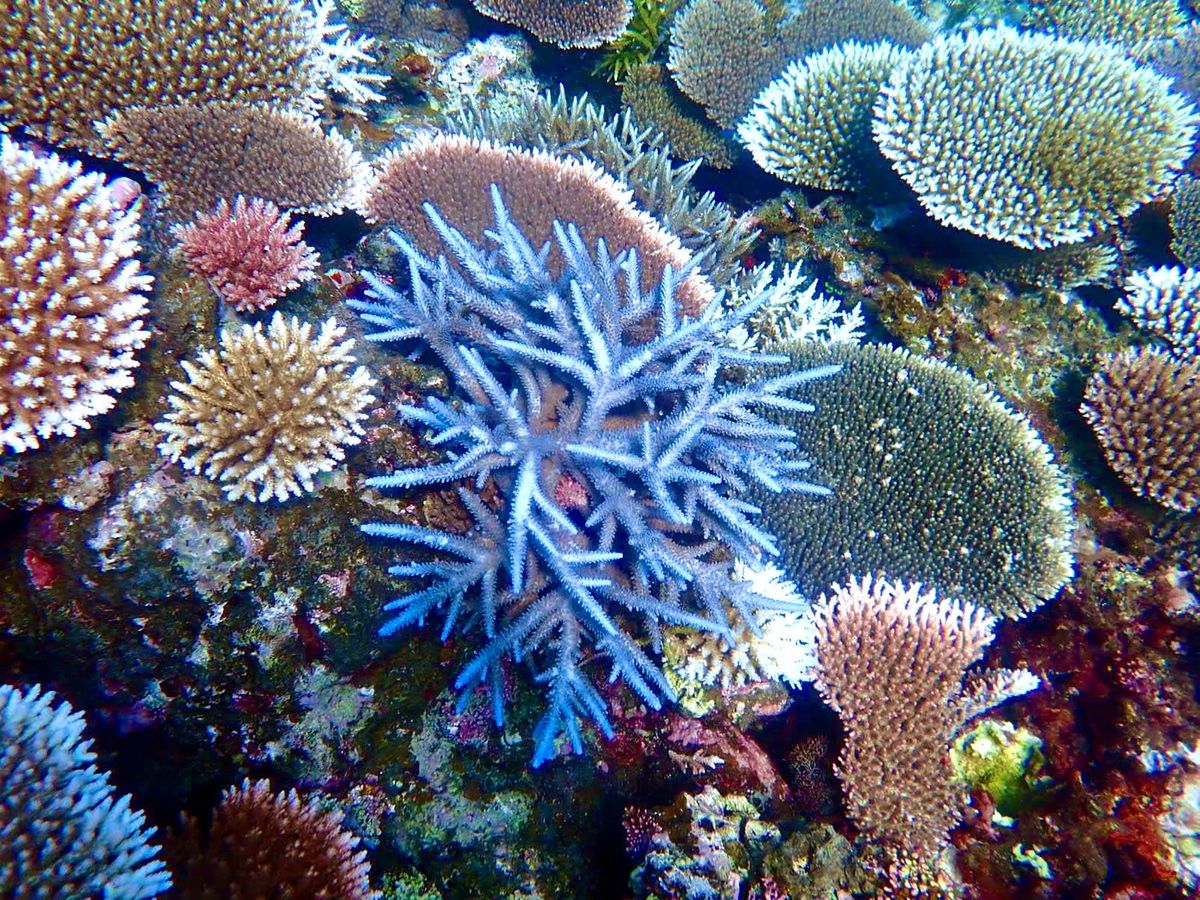 サンゴ礁も素晴らしくテーブルサンゴや赤、青の珍しいサンゴも見る事が出来ました。