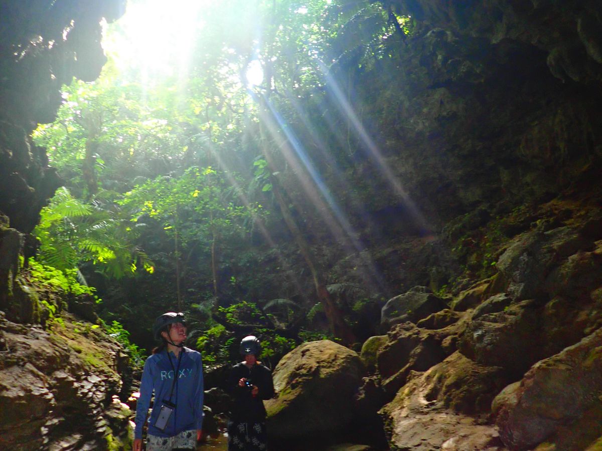 鍾乳洞のケイビングでは3つ目の日差しが入ったあの写真は僕も驚きでした!