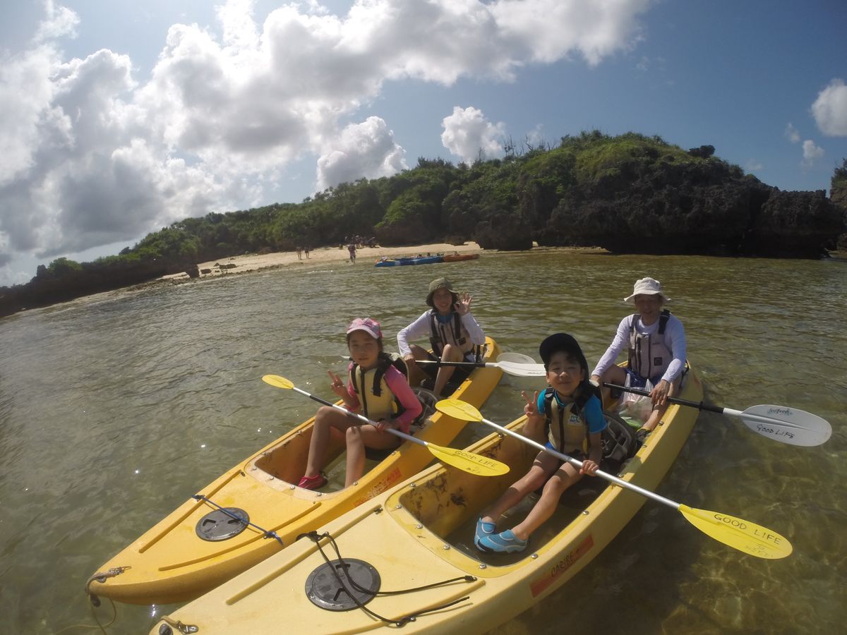 3世代の女子会5人組で参加しました。梅雨に入ってましたがラッキーなことに晴れて、海を楽しむことができました。母はクリアカヤックで下ばっかり見てたら酔ってしまったけど、ガイドの方に親切に気を使っていただき、なんとか終えることができました。小学生の娘たちもカヤックとシュノーケリングを楽しみました。ヤドカリもかわいかったです。プチ青の洞窟もきれいでした。ガイドの方もほんとに親切だったし、思っていた以上に楽しめ、大満足の体験となりました。ありがとうございました。