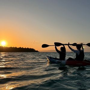 初めてカヤックを夫婦で体験しました!サンダルから防水具、カヤック道具一式貸してくれて、安心でした。明るいガイドさんで楽しく過ごせました。比謝川の自然の話やカヤックの乗り方など色々教えてくれました。川から海に行くのをカヤックで漕ぎながら進み、雄大な海の上で、目当ての夕陽を見ることができて、とても綺麗でした。マングローブの木々をくぐったりもしました。体力に心配を感じていましたが、5回くらいスポットを決めて進み、ゆったりと楽しむことができました。美しい夕陽を見れた体験は一生の思い出になりました!