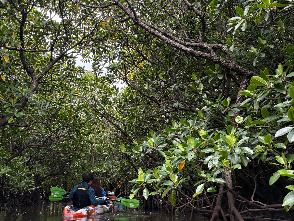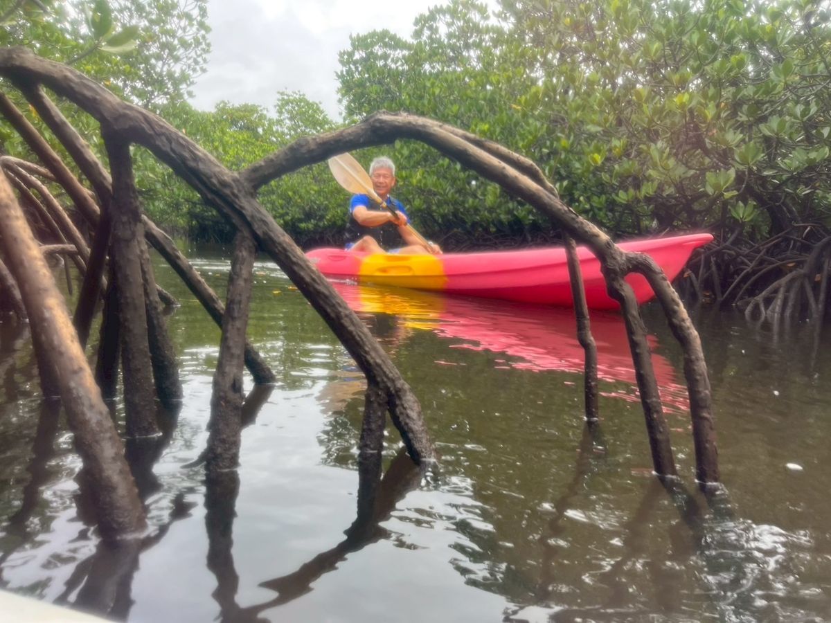 天気は生憎でしたが、カヌーにのっていくと、マングローブに囲まれ、のんびりした時間を過ごすことが出来ました☺️