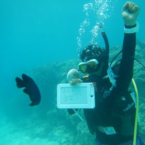 初めての潜水スクーター、3才の息子と一緒に潜る事が出来るか不安でしたが、お店の方の丁寧な説明や楽しく和ませて下さいり、楽しく潜る事が出来ました!!