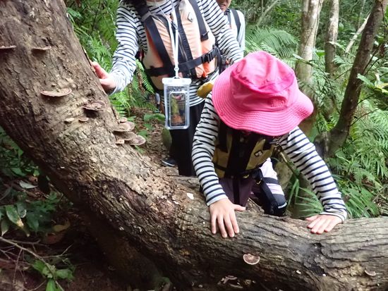 私たちのガイドは横目さんというベテラン女性ガイドさん!楽しそうに見本で先頭で飛び込みジャンプをしてくれるので、子供たちも続いてジャンプ!