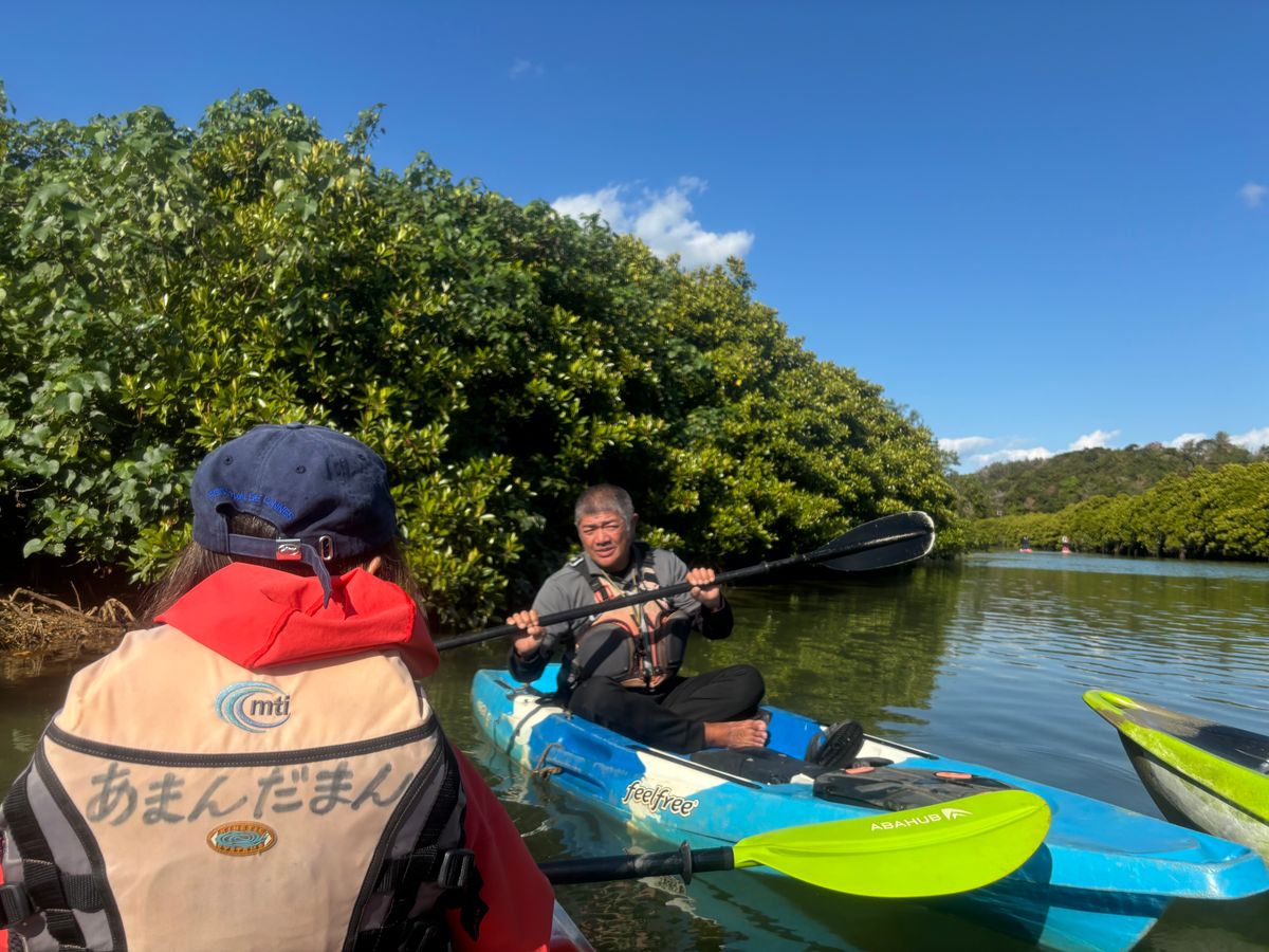 初めてのカヤックでしたが最初に漕ぎ方の練習、コツなど丁寧な説明をしてくださったので不安なくスタートできました。最初は少し苦戦しましたが教えてもらったコツを思い出しながら漕いでいくとだんだん上手くできるようになりカヤックを漕ぐのがとても楽しくなりました!合間、合間にマングローブの説明や沖縄のお話などで和ませてくれながら楽しく約2時間過ごす事が出来ました♪2月の寒い時期でしたが寒さを忘れる楽しさ☺️あまんだんさんで体験できてよかったです!また、沖縄にきたらやりたいアクティビティになりました❗️