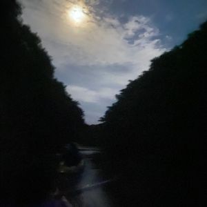 以前、午前中のカヤックツアーに参加したことがあったのですが、夕暮れからのツアーはまた雰囲気が全然違いました。日が暮れ、辺りがだんだんと暗くなり、コウモリやフクロウ、クジャクの鳴き声を聞きながら、月明かりだけが照らす川をカヤックで進んで行くのはとても神秘的で静かで気持ち良い体験でした。