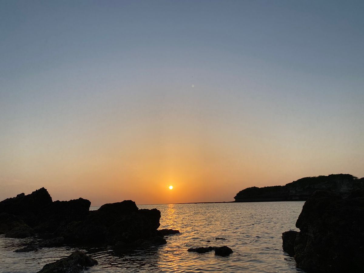 水平線に沈む太陽をきれいにみることができたようで嬉しく思います。