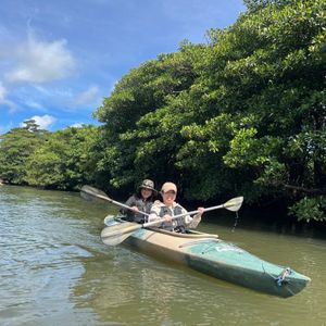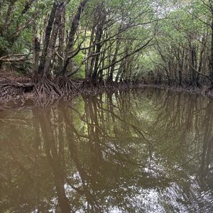 あいにく晴天ではなく、少々残念な気持ちでしたが、ガイドさんの「カヌーには最適な天気」という言葉を信じて川を漕ぎました。マングローブに到着した時には、風もなく、水に映る木々の美しさと静けさに感動しました。行き帰りに西表島のことや楽しいお話をしてくださって、あっという間の時間でした。ありがとうございます。