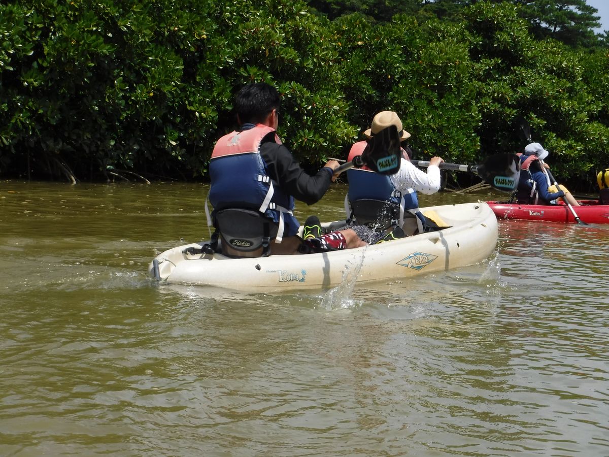 体験コースのほかにも川に入って途中カヌーを降り、マングローブの中を散策するコースもありますので、ぜひご参加ください。