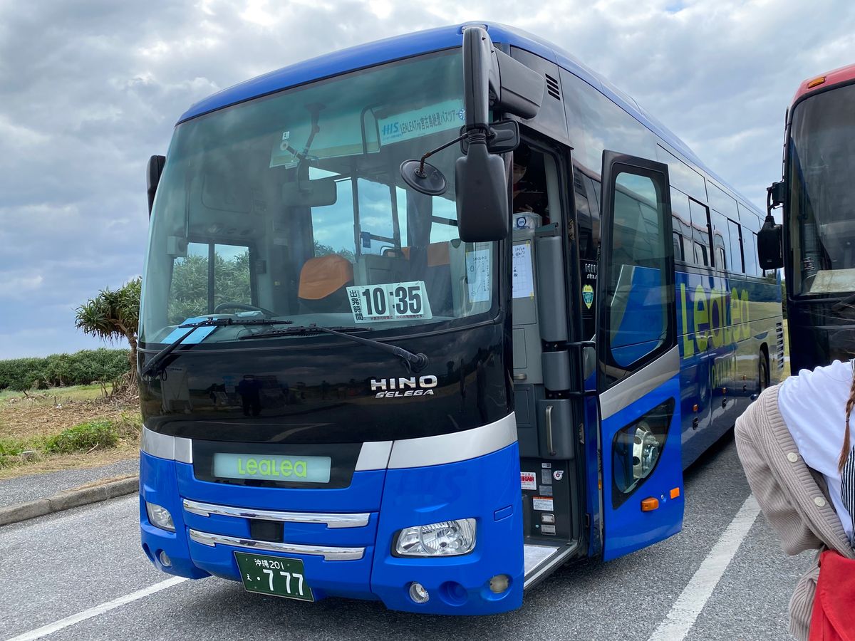 沖縄のバスツアーは一般的に「こことあそこをこれくらいの時間見て回りたい」という客側の希望に合うのがなかなか無いのだけど、この那覇バスさんのAコースは自分の希望にピッタリでした。バスは最新鋭(韓国現代自動車製?)でシートの具合がとても良かった。エアサス仕様だったのかとても柔らかな乗り心地で疲れませんでした。