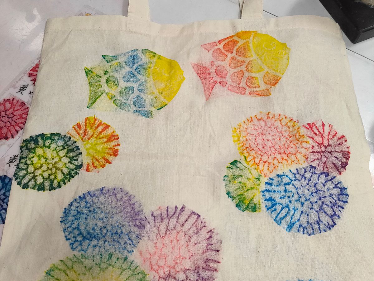 時期も関係して2組だけでゆっくり体験できました。説明も丁寧でした。ありがとうございました。時間フルで没頭しました。トートバッグ、エコバッグとして使いたいと思います。