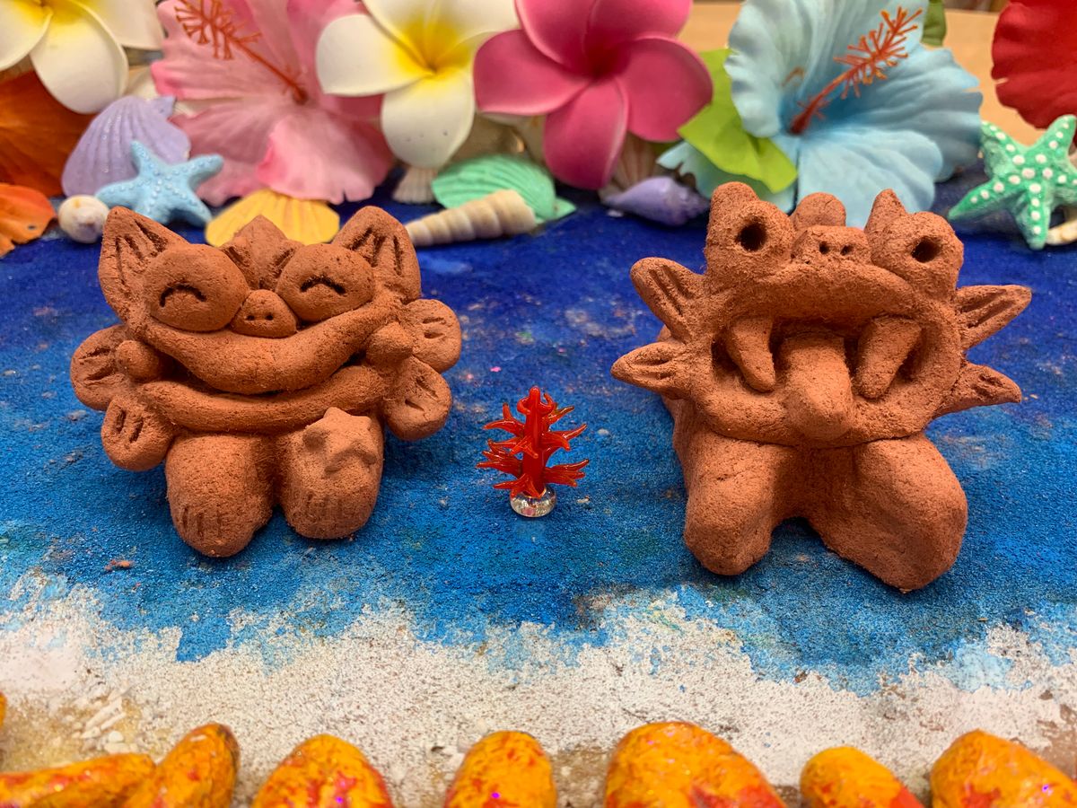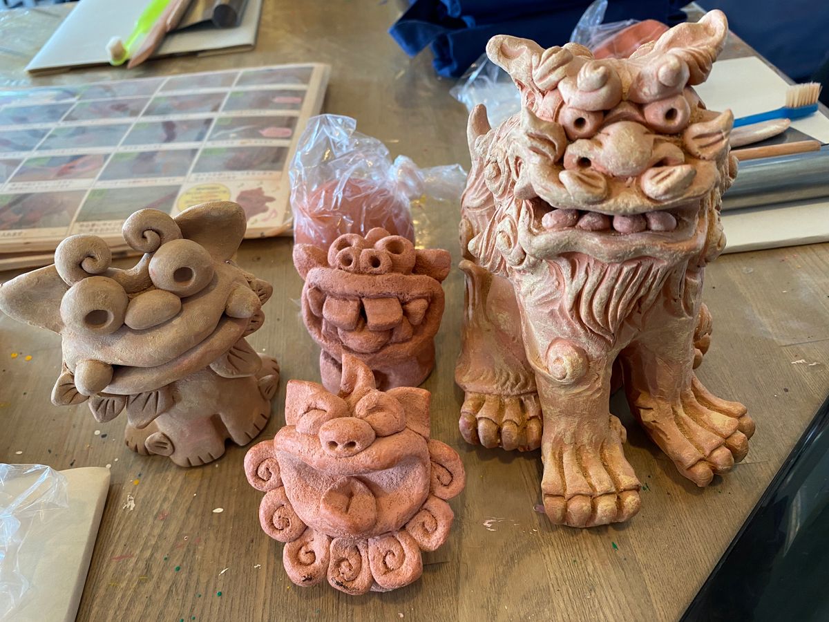 牧志公設市場から5分ほどの商店街内にあるお店。妻と2人でシーサー作り体験に参加しました。当日は急な時間変更にも快く対応してくれて助かりました。