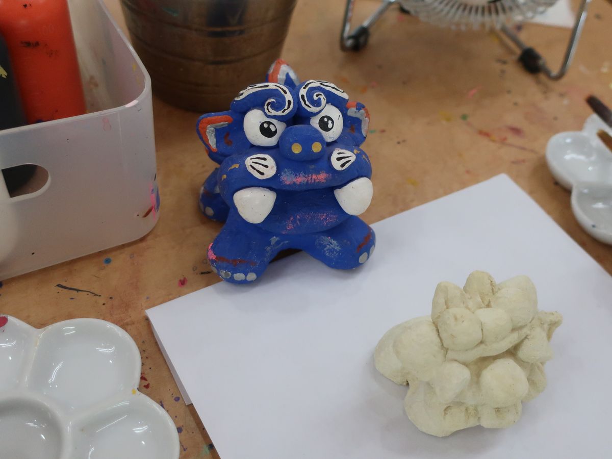 たくさんあるアクリル絵の具の中から、自分の好きな色を組み合わせて、シーサーに自由にペイントできてとても楽しかったです‼︎