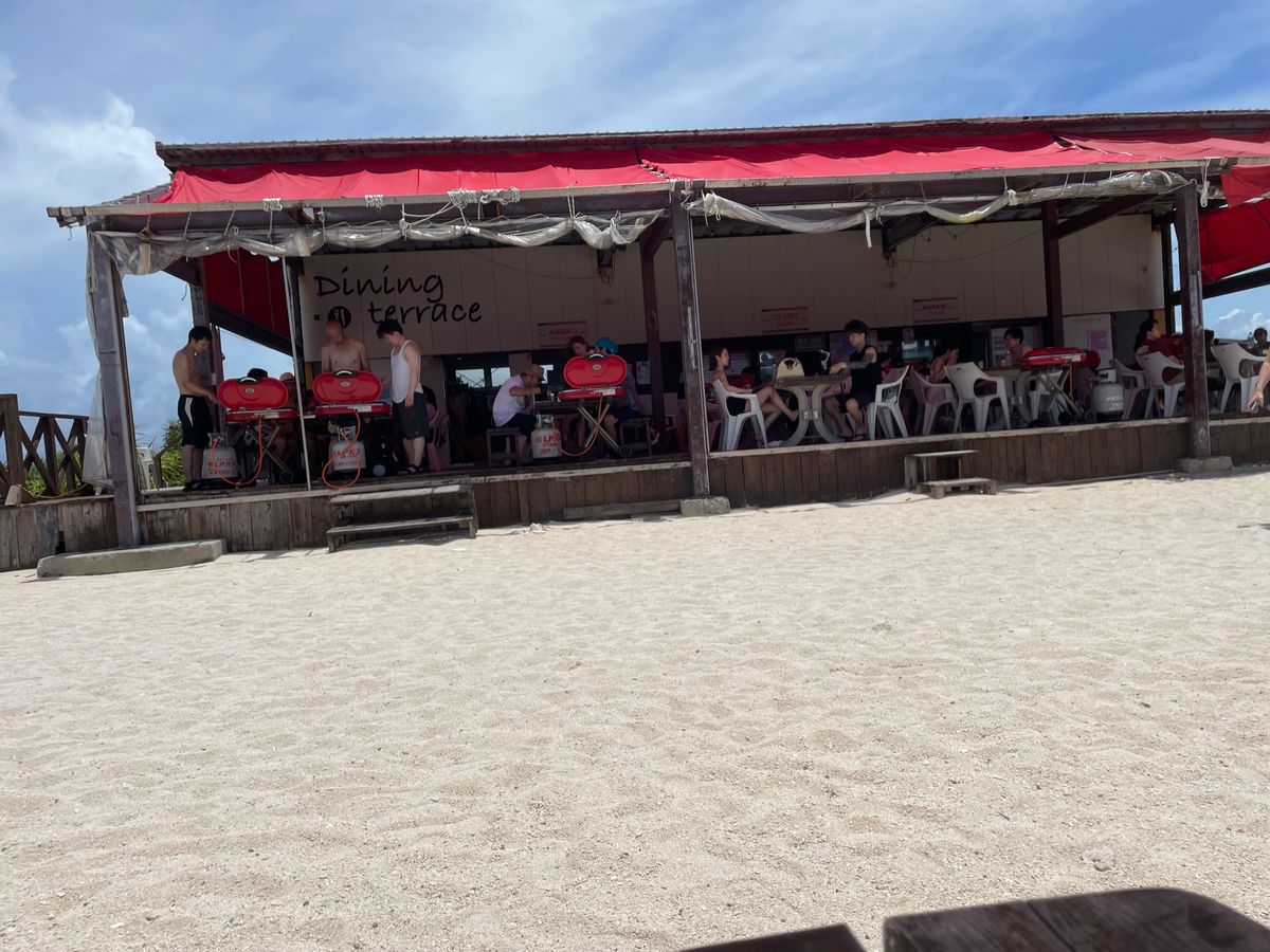 食べ物&簡単な売店も、有料ですが必要なシュノーケルセットや、備品の貸し出し等もあり、、快適。