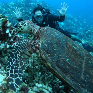 泳ぎが得意ではないのに一人参加。初めての体験ダイビングは不安もありましたが、マンツーマンでインストラクターさんがついてくれたので、他の方に迷惑をかけるんじゃないかなどの心配をせずに楽しむ事が出来ました。1本目は余裕がなかった私でも2本目で海ガメと超接近出来て感動しました!シュノーケリングでは味わえない海中散歩は大変楽しかったです。また次回沖縄へ行った際はリピートで、今度はマンタに会いたいです!丁寧に私のペースに合わせて案内して下さったインストラクターさん、ショップの皆様、貴重な体験をさせて下さりありがとうございました。