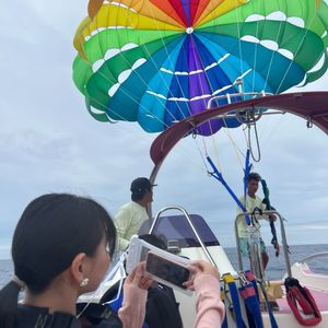 ドキドキしていたのですが、船長さんやアシスタントのお兄さんがとても優しくて安心してパラセーリングすることができました!!