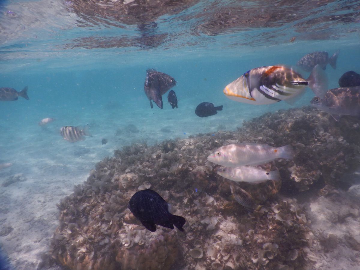海に入った瞬間、たくさんの魚がいて、感動しました!結構広い範囲を泳ぐことができ、少し場所を変えただけで見える景色が変わりました。他の人は海亀にも会えたそうです。