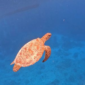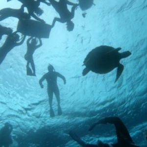 ウミガメを見たくて参加しましたが、海に入って本当にすぐに出会えました。とても感動的です。