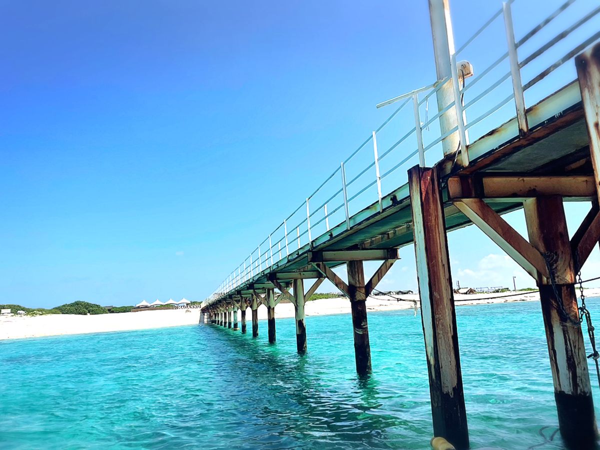 友人の結婚式に参列のため、ひさびさに行けることになった沖縄。せっかくなら何かできたらと見つけたのがナガンヌ島でした。泊港から向かうまでも、少しずつ島が見えてくるワクワク感を感じつつ、突如現れる大きな桟橋に気分はすでに最高潮。海外にいるような気分も味わえました。