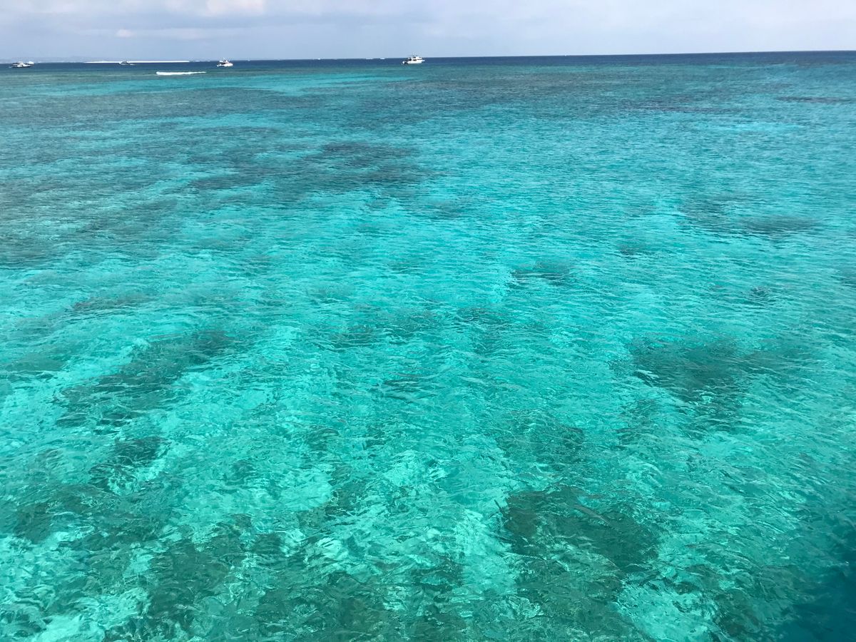 魚がそこまでいっぱいいるわけではなく、地形はゴツゴツしていました。ポイント的には、トンネルみたいに珊瑚があって、その中に魚がいてダイビングしたら楽しいだろうなと思いました。ただ、素潜りが禁止で楽しめませんでした。安全上は仕方ないです。二階建ての船に乗せてもらいましたが、夏休みもあって人がいっぱいで、船を走らせてる間縮こまって乗ってました。もっと余裕を持った予約が必要だと思います。スペースがなさすぎました。お昼のお弁当は普通でした。とてもよく晴れていて、ケラマブルーはキレイでした。海の中はキラキラ揺らいでいて、癒されました。