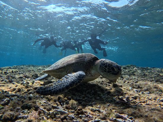 ここでしか撮れない写真を撮ったり、きれいな珊瑚のカケラや貝殻を拾いましょう。 お散歩後、いよいよシュノーケルの使い方の練習。初めての方でも安心してお楽しみいただけます。