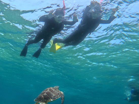 ここでしか撮れない写真を撮ったり、きれいな珊瑚のカケラや貝殻を拾いましょう。 お散歩後、いよいよシュノーケルの使い方の練習。初めての方でも安心してお楽しみいただけます。