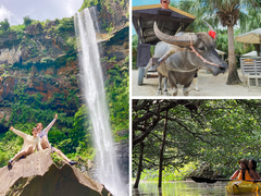西表島の人気スポット「ピナイサーラの滝」と「由布島」を1日で巡るよくばりツアー!午前はマングローブカヤックと滝壺トレッキングでアクティブに、午後は水牛車で由布島へ渡ってのんびり観光。自然体験も癒しも一度に楽しめるバランスコースです。