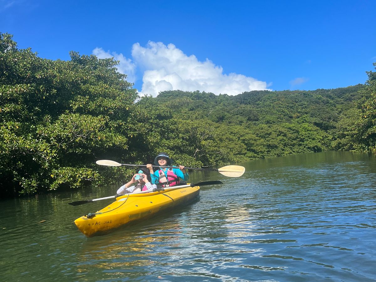 小学生2人の子供と4人で参加しました。カヌーは初体験でしたが、ガイドさんのレクチャーもあり楽しめました!遊覧船では入れないとこまで行けるし、間近でマングローブを観察出来て本当に楽しめました。潮の時間によっては奥まで行けないこともあるらしいですが、珍しい生物も見れるし子供でも漕げたのでファミリーにも良いと思います。