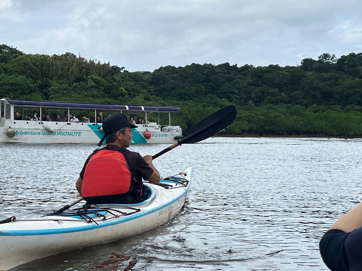 梅雨入りしてすぐの沖縄でしたが、西表島では雨が降ることは無く適度な雲と青空の中気持ちよくツアーに参加することができました。初カヤックでしたが全くひっくり返る心配もなく雄大な自然の中とマングローブ林の中を楽しく漕ぎ進むことができました。作っていただいた特性の八重山そばはお店で食べるよりも最高に美味しかったです!
