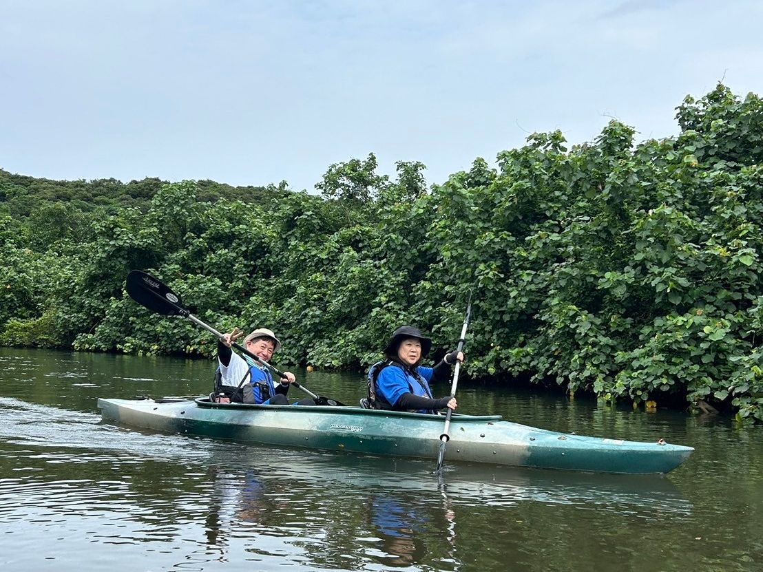西表島の出会いは全て初体験。石垣島から西表島上陸からのカヌーに乗るまでの説明も素早くソツが無いものでした。不安を覚える間も無く,気づけばオールを漕いでいました。しかし夫婦は全くの初心者、目的地へ到着迄に数度の座礁や水面に張り出した枝に突入するなど他の参加者に遅れを取るばかりでしたが、その都度近寄りカヌーを引っ張ってくれたり、適切なアドバイスをくれました。気持ちよく自然に触れることができて楽しかったです。由布島までの案内や生物保護センターの行き帰りの間にも、さまざまな植生や西表山猫の現在など詳しく説明してもらい、担当されて頂いたスタッフに本当に感謝であります。台風にも負けないように板状の根を張るサキシマスオウノキ、水没しない高さ白アリの巣、水たまりで跳ねるトントンミー、7月に川面を真白に染めるマングローブの花、そして又来いよ!と手を振るシオマネキ……最高でした。