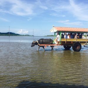 竹富島の水牛車もいいですが、海を渡るこちらの水牛車も独特のもの。