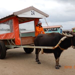 水牛車は、決まった時間に立て続けに何台も出発して、先に出た水牛がうんうんタイムで立ち往生しているのを自分たちの水牛車が追い越すと、乗客の子供たちは大盛り上がり。ローカル色濃いレースのようで楽しかった。