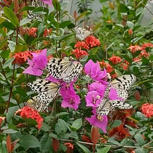 ブ―ゲンビリアが咲き、蝶が舞い別世界に来た感じです。