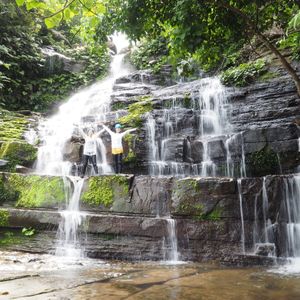 圧巻の落差、ピナイサーラの滝では滝つぼで泳いだりして大はしゃぎ笑