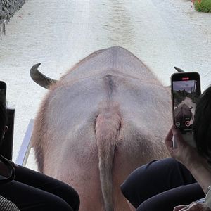 後半、スコールのような雨が降ってきましたが、傘も買えて、水牛とも写真が撮れて、約1時間の滞在でしたが、大満足でした!