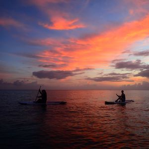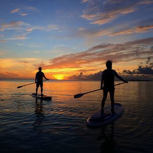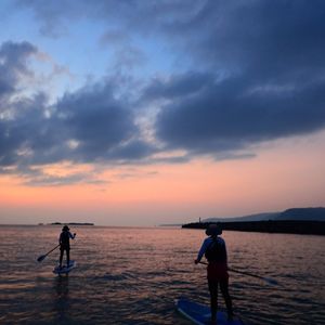 GOさんに乗り方をわかりやすく教えて頂きはじめてでも立つ事も出来ました。綺麗な朝焼けの海の上でのSUPはとても気持ちがよかったです。とても綺麗で素敵な写真も沢山撮って頂きありがとうございます。素敵な記念旅行になりました。