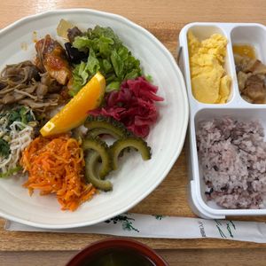 由布島での昼食はバイキング形式だが、最初に主食を取り過ぎると後が大変。