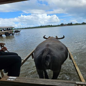 その後、由布島の水牛車ツアーへ。ゆっくりと水牛が浅瀬を渡る姿はとても穏やかで、のどかな音色の三線が心地よかったです。遠浅の美しい景色の中をのんびり進み、南国らしい時間の流れを全身で感じました。マングローブの体験も水牛体験も自然と人の温かさに包まれる体験で、まさに西表島・由布島の魅力を凝縮した旅でした。本当に感動したのでまた体験したいです!