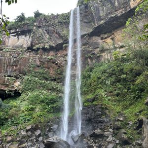 到着したサンガラの滝は、水が薄くカーテンのように流れ落ちていて、想像以上に幻想的でした。滝裏にも入ることができ、水しぶきとひんやりした風がとても心地よく、気持ちが一気にリフレッシュされました。