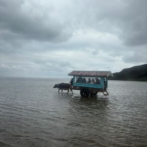 西表島から由布島へ、水牛車に乗って行くとき、三味線を演奏していただきました。ツアーに参加した日はあいにくの曇りでしたが、浅く穏やかな沖縄の海と三味線の音色がとても心地よかったです!