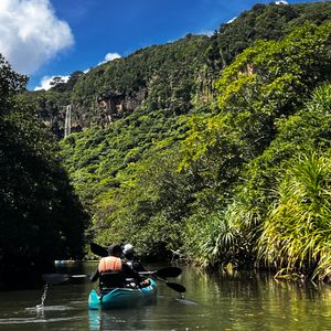 6歳男児と親子3人でのツアーでした。カヌー、山登り、滝壺へのダイブまで、子どもは全部イキイキと楽しそうにしていました。日曜午前の部でしたが、幼児の家族連れ二組、計6人とガイドさん1名でとてもスムーズな案内で心底満足です。シャワーブースも新築でキレイ、13時解散くらいでした。