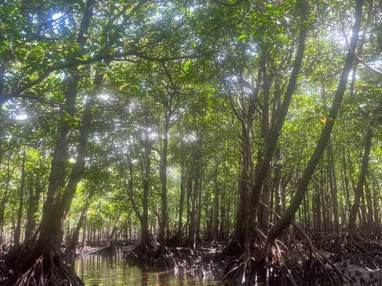マングローブの森の間をカヌーに乗って通る経験は、子供にとっても大人にとっても特別な時間でした。