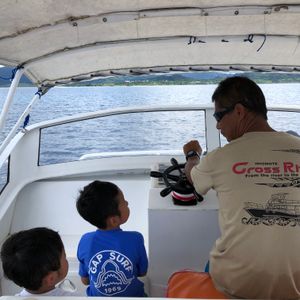 二十数年ぶりのシュノーケリングに夫婦二人とも期待と不安でいっぱいでしたが手厚くフォローくださり最高の体験&思い出になりました!ウミガメにもニモにも会え、普段TVの映像や水族館でしか目にしたことがないカラフルな魚たちに囲まれました。溺れないよう必死であるはずが写していただいた写真はサンゴと魚に囲まれ手を振っており不思議と余裕が感じられます。とてもいい写真を撮っていただきました。シュノーケリングスポット近くにはほかのツアーの船もいましたがクロスリバーさんの船は全然格が違います。きれいで揺れないうえにトイレも更衣室もシャワーも船内にあるんです。一緒にツアー参加されていたリピーターの方の話ではクロスリバーさんにお世話になるともうほかのツアーには参加できないとおっしゃってました。そのくらい質が違うそうです!初心者二人のためにさぞかし気を遣われたと思いますが船長さんもスタッフの方も最後まで爽やかな笑顔で対応くださり心よりお礼申し上げます。いくつかのツアーで迷われている方、断然クロスリバーさんをオススメします!