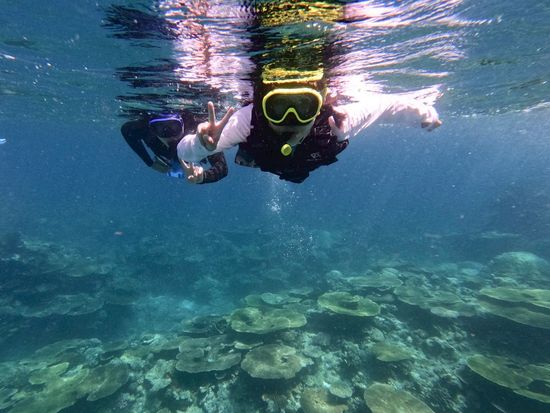 今回は子供2人連れてシュノーケリングしました。1番良かったのが保育園年長の長男がシュノーケリングできるかが心配でした。しかし、ガイドさんが凄くフルフェイスマスクでシュノーケリングできるようになったのは感動しました。テーブル珊瑚もすごく綺麗でウミガメさんもいたので子供たちも喜び本当に良かったです。