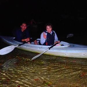 日没後の本当の暗闇と静かさの中をカヤックする、とても貴重な経験ができました。暗闇は、目を凝らして数メートル先が見えるかどうかで、その分夜光虫が綺麗に見えました。静かな空間で、カヤックを漕ぐ水の音と、フクロウの声だけが聞こえ、普段都会では体験することのできない自然を満喫しました。