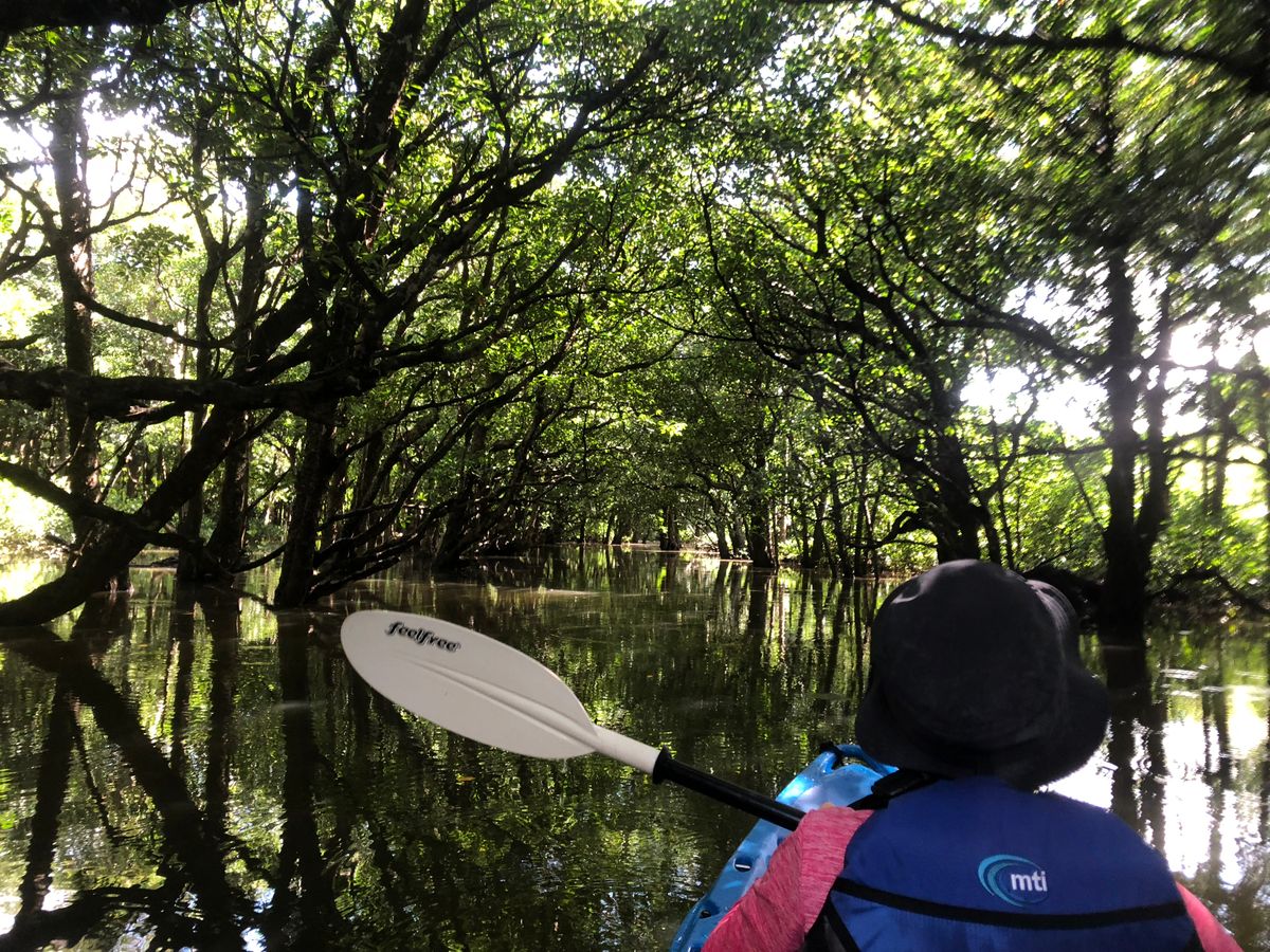 カヤックは思ったより簡単で、アマゾン川のような景色の中をのんびりと進んで行きます。もうこれだけで参加して良かったと思いました。