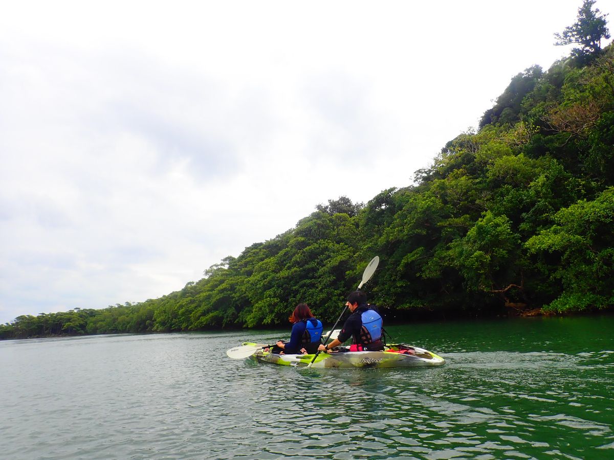 9月の中旬に2人で参加しました。◯石垣島のホテルからツアー当日に西表島に渡る予定でしたが、台風が接近しており、船の運行を不安に思っていましたが、前日にベルトラ経由とショートメールで案内をいただき、電話での照会にも丁寧に応えていただき、安心してツアーに参加できました。(船は往復ともに通常運行されました)◯ツアーには私たちの他に4組、合計10人が参加しており、ガイドは2名の方がついてくださいました。港でピックアップしていただき、事務所で準備をしてから、まずはカヤックへ。河口近くの川幅の広いところから川上へ上り、マングローブの生い茂る狭い支流へ入っていきます。時間帯がほかのツアーより早いこともあるらしく、他のツアー客もおらず川全体が貸切状態でした。天気に恵まれたこともあり、神秘的な雰囲気の森の中をカヤックで進んで行く今までに体験した事のない素晴らしい時間でした。◯カヤックを終え、見晴らしの良い高台の公園でお昼ごはん(ガイドさん手作りの八重山そば!おいしい!)を食べてからキャニオニングへ。ヘルメットなどギアのサイズが豊富で助かりました。山道を少し歩いてから川の中へ入っていきます。天然のスライダーや飛び込みポイントでは丁寧にアシストしてもらい、心置きなく楽しめました。9月でしたが寒くもなく、川の水もそこまで冷たくなく、とにかく爽快でした!4メートルの高さからのジャンプはスリル満点でした!◯川から上がるとまた眺めの素晴らしい展望台で暖かいお茶をいただきほっとひと息つけました。ガイドさんの人柄もよく終始わきあいあいとした雰囲気で本当に楽しい一日になりました!ありがとうございました!