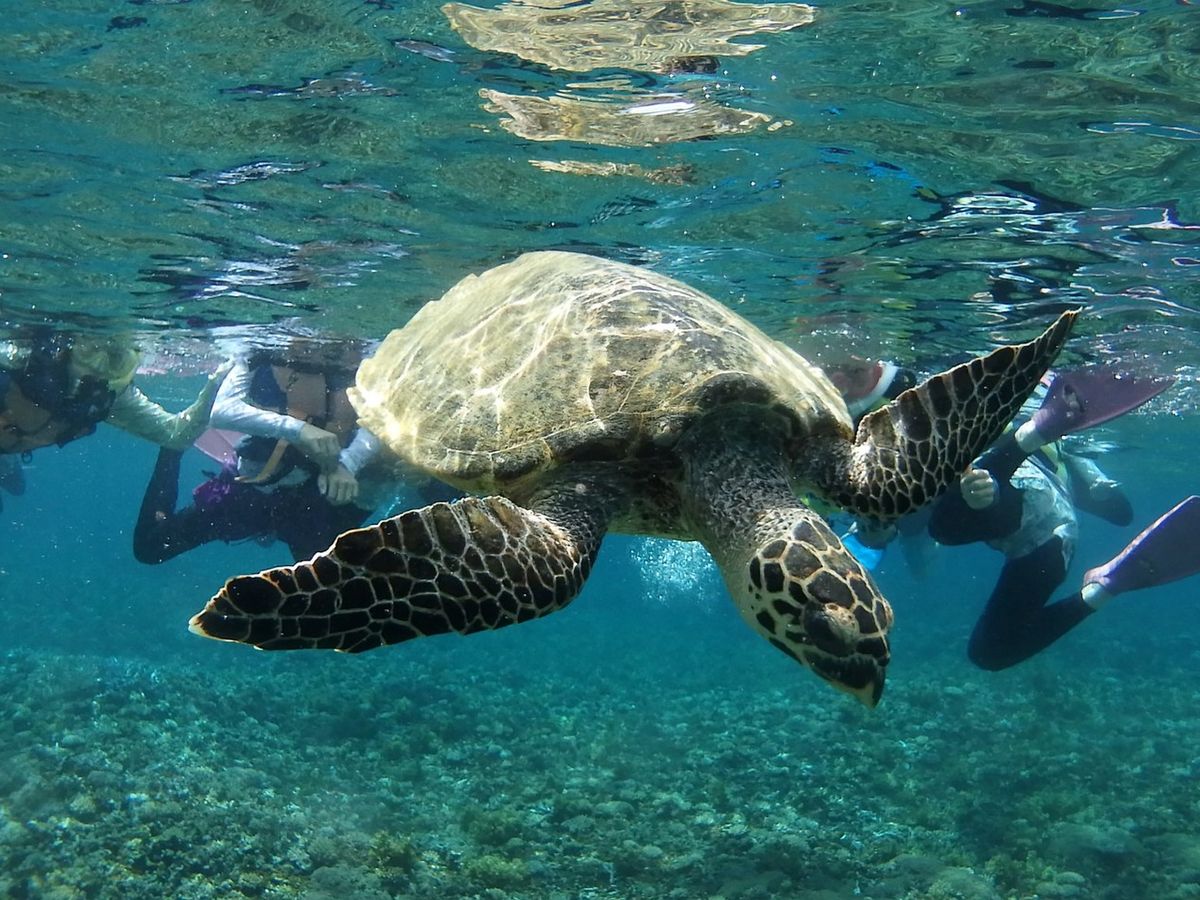ウミガメと泳ぐことができたので、楽しかったです!