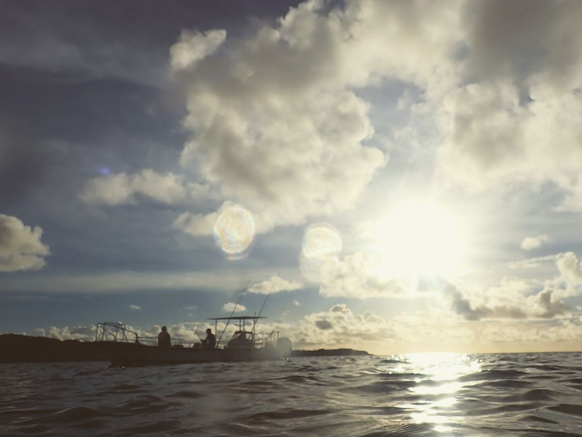 私と子どもだけシュノーケル、主人は船上に残っていましたが、船長さんと楽しくお喋りしていたようです。水平線近くに雲があり、サンセットの瞬間は見られませんでしたが、夕暮れの誰もいない雰囲気の良い海で、思う存分楽しめました。